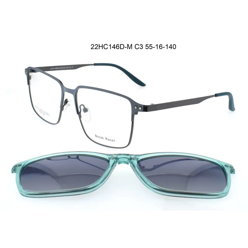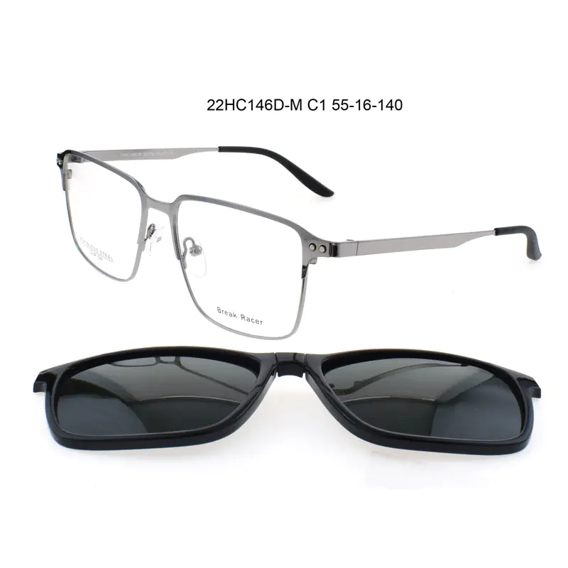 この HIVISION 折りたたみ式クリップオンメガネフレームは、実用性とスタイルの完璧な組み合わせです。洗練された金属フレームと取り外し可能な磁気クリップオンサンシェードで設計されており、光学機能と日焼け止めの両方を 1 つの便利なパッケージで提供します。折りたたみ可能なクリップオン機能により、必要なときにサンシェードを簡単に取り付けることができ、瞬時に紫外線を保護できます。不使用時はサンシェードをすっきり折りたたんで収納できるので、携帯性に優れたコンパクトなフレームです。